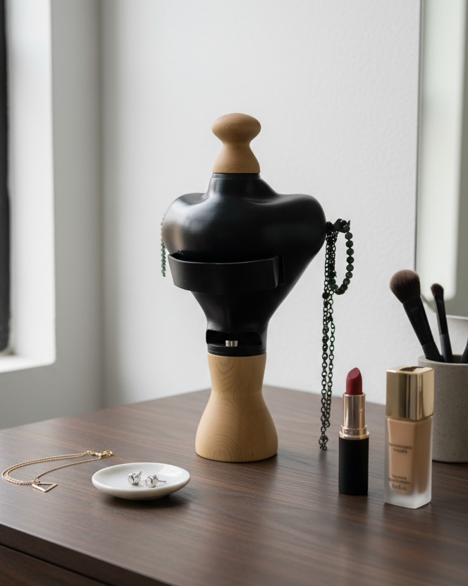 Torso is a mechanical jewellery box that explores how motion shapes experience. Through cams and rotational mechanisms, the object combines structure, interaction, and presence, turning a functional container into a deliberate and expressive physical artefact.