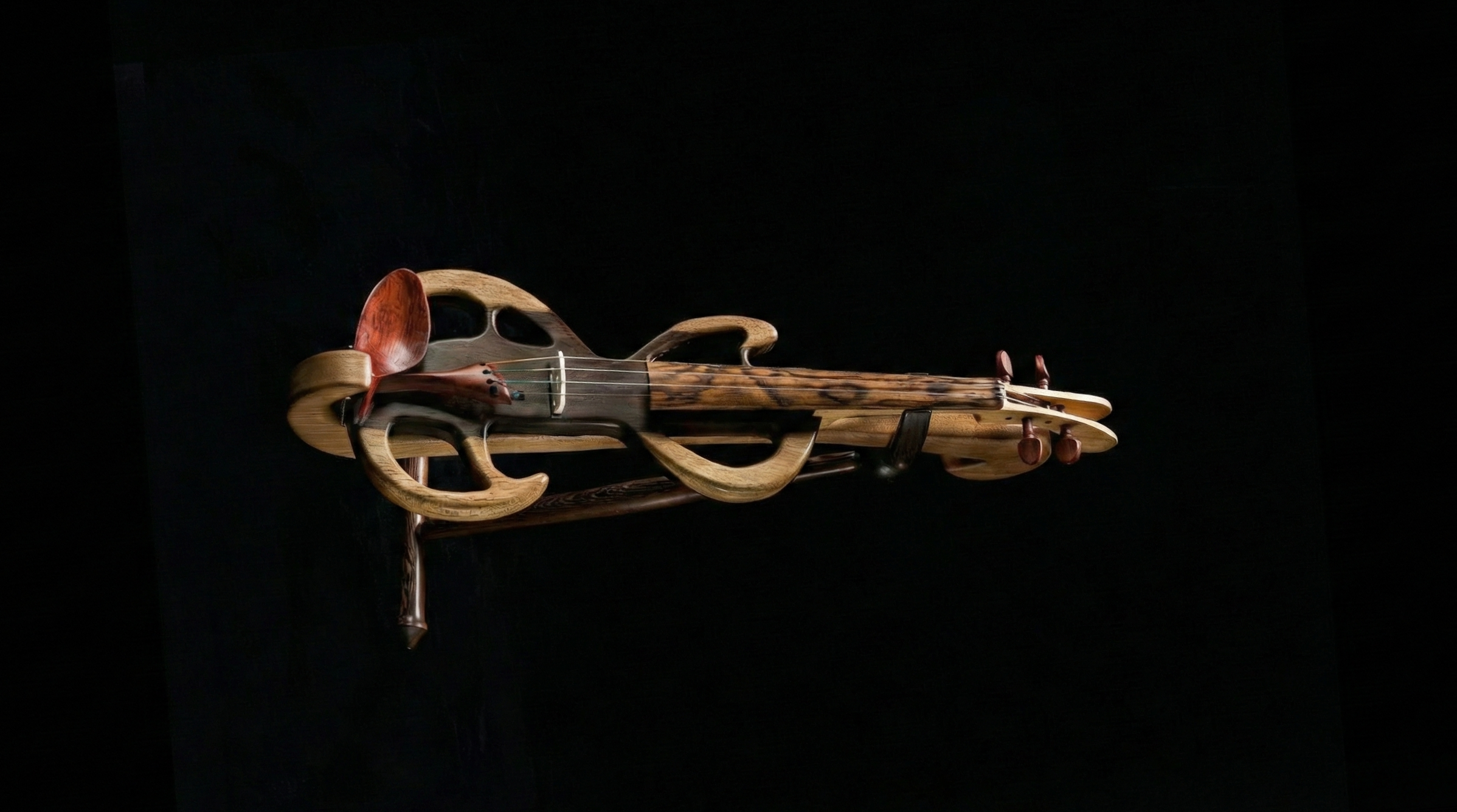 Multigrain Electric Violin is a sculptural electric violin that treats wood as an expressive medium rather than a uniform material. Different woods are deliberately combined to highlight their individual traits—grain, color, density, and strength—allowing each part of the instrument to visually and structurally speak for itself.